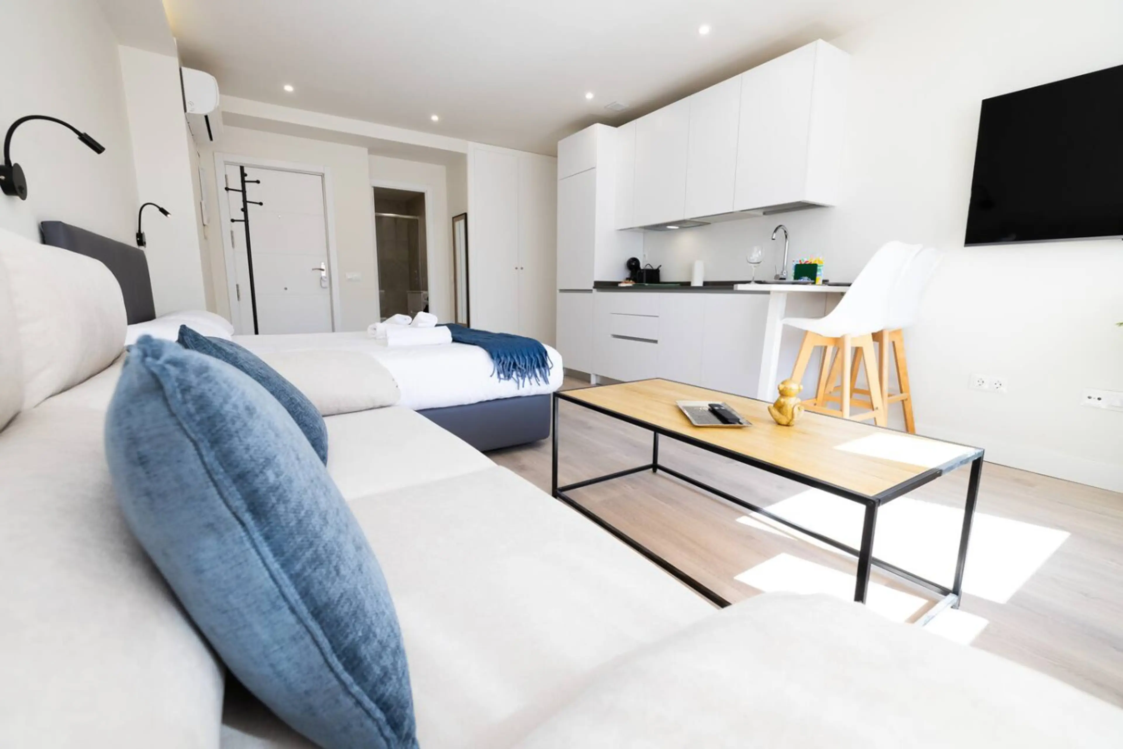 Apartamento moderno, acogedor y recién reformado, ideal para hasta 4 huéspedes. Cuenta con una cama doble y un cómodo sofá cama, cocina equipada, baño con ducha, WiFi rápido, aire acondicionado y mesa de comedor. Muy luminoso y perfectamente ubicado en una zona residencial tranquila y verde, a solo ...