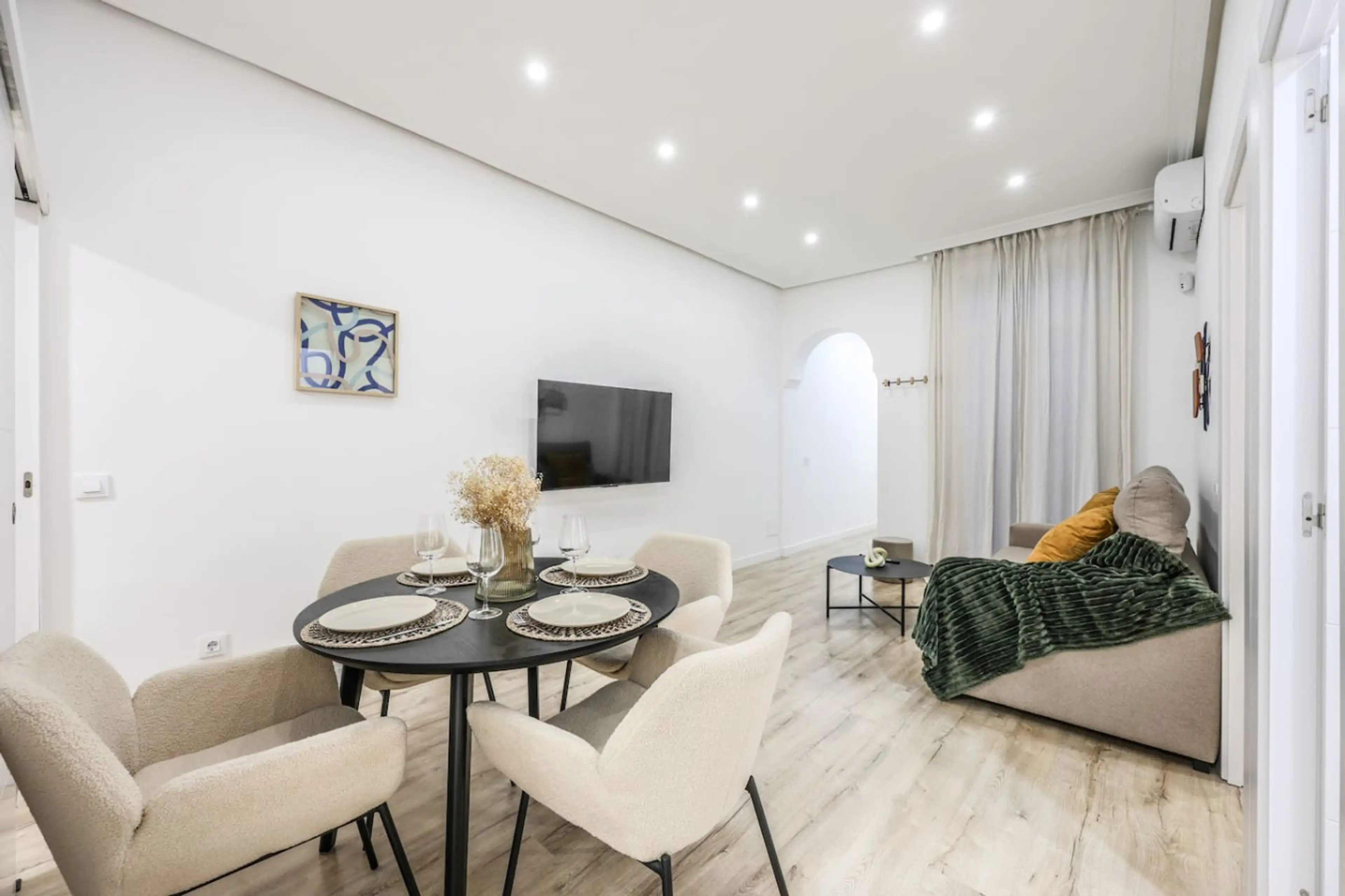 Bienvenidos!! Características del alojamiento: Capacidad: Hasta 5 personas. Cocina: Completamente equipada para cocinar y disfrutar de comidas. Salón: Espacioso y cómodo, con sofá cama italiano y TV de pantalla plana. Comedor: Elegante diseño para 4 comensales. Terraza interior: Espacio privado y tr...